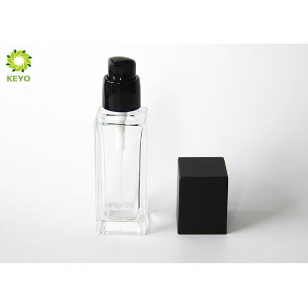 Square Clear Glass Empty Cosmetic Containers With Pump Cap Capacity 30ml 1 OZ Images |